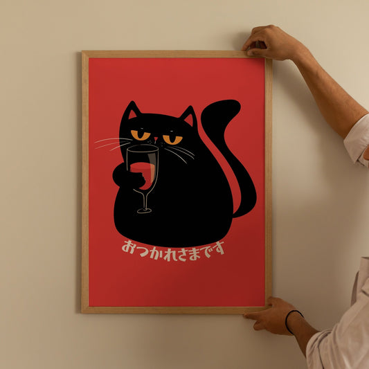 ワインを飲む猫ポスター