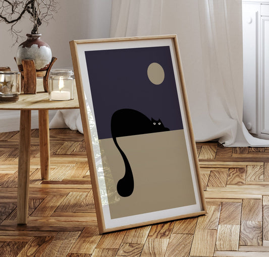 月を見つめる猫ポスター