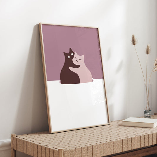 猫ポスター 「抱き合っている猫たち」