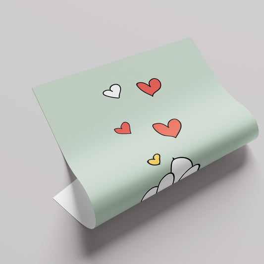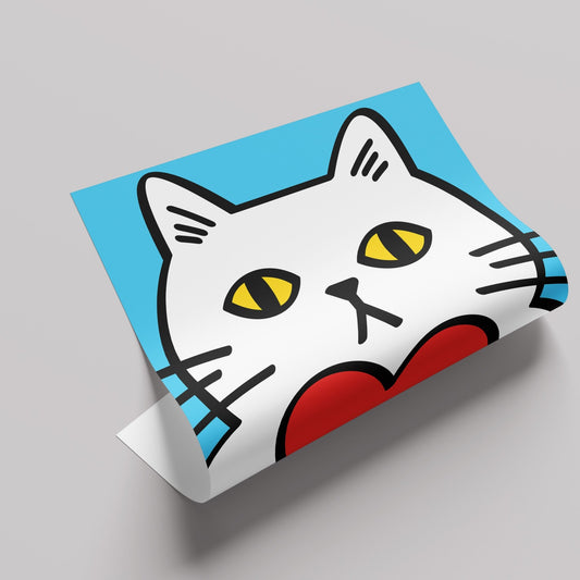 ハートを持つ白猫ポスター