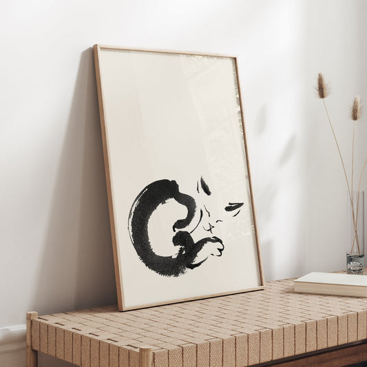 猫ポスター 「丘で眠っている黒い猫」